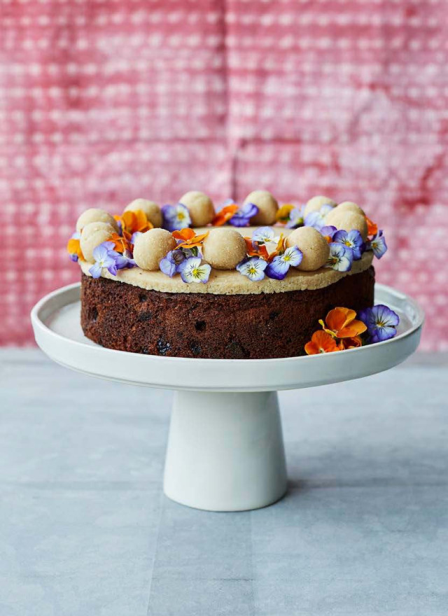 "This Simnel cake goes down a treat in the lead up to Easter. Apart from upgrading many of the ingredients for better health, our twist is the addition of goji berries and a few of our favourite spices. The use of dried berries and fruits adds chew and important fibre. Don’t put too much on your plate – this is a rich one!" - Modern Baker.
