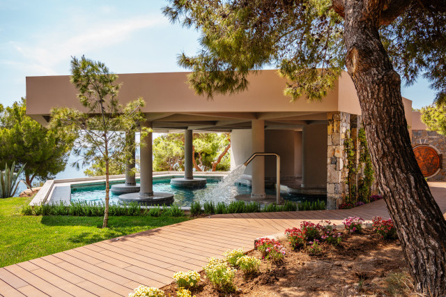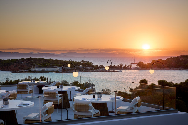Nearby, Cape Sounio, a Grecotel Resort to Live, makes the most of its dramatic setting. Terracotta bungalows and villas face the water or the Temple itself. Some come with private pools and gardens where you can swim at dawn as the columns catch the first sun. There’s a private beach, multiple pools, and a layout that feels spacious rather than crowded – a rarity in high season.