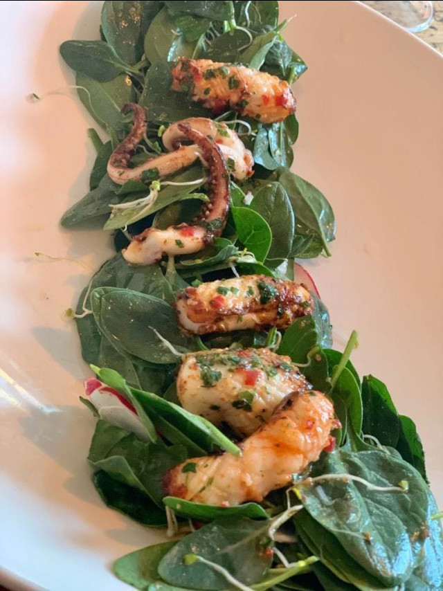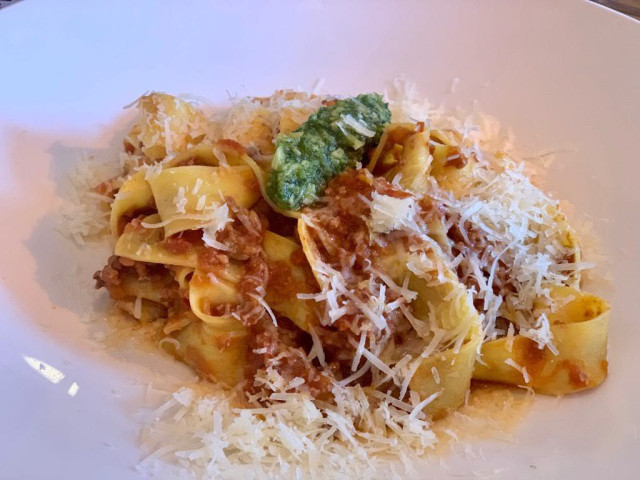 We start our meal with strawberry bellinis and share a toast to the warm weather outside. The street is starting to get busy with people and Antippa waves to someone he knows who’s passing by. For starters, I decide on the English burrata with pea, lemon, and orange oil, and Prosecco. I had never had Prosecco with a cheese dish before but was pleasantly surprised by how well it worked with the burrata. My husband opted for the grilled squid with chili and garlic and an herb salad. The squid was perfectly cooked, fresh, and tasty. The rest of our meal continued to deliver high notes with special mentions to the house favourite Wagyu beef Bolognese and the absolutely delicious chocolate pretzel tart, which came highly recommended and was exceptional. Antippa recommended a bottle of the organic, vegan Vitese Nero D’Avola from the Colomba Bianca winery in Sicily. He gave us some background on the Sicilian grapes and the fact that they’re often under-rated. The wine went perfectly with our meal and we left Manuka Kitchen feeling like we had discovered a well-known neighbourhood secret that we could not wait to return to.