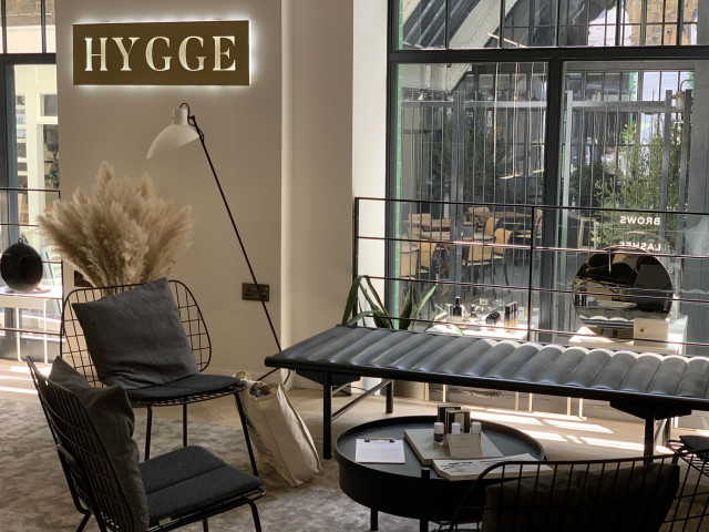 The space is artfully divided into different sections so nothing feels crowded and there are areas to relax whilst not disrupting the customers having their treatments. A sign, encouraging guests to “hygge”, glows above a lounge area where a variety of beauty products are also on display.
