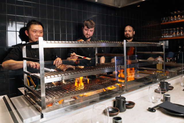 Vegetarians will be happy to know that Robata has a good selection of meatless plates, such as the Crisps & Dips with vegetable crackers and a creamy dip made with crushed avocado, shallot, tomato, and pepper soy. Other vegetarian options are the miso aubergine with pickled shimiji mushrooms and Robata red chilli, and the broccoli steak, to name a few. Moving onto the next parts of the menu, we had the salmon roll with asparagus, avocado, crispy shallots, and yuzu mayo, which was fresh and had great textural contrasts. From the robata grill we went for the sweet and spicy beef skewers and the signature dish, the wood-flamed Iberico pork pluma with black pepper and sweet pickled nashi pear. The meats were smoky, tasty, and the seasoning was on-point.