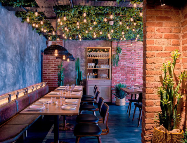 This Farmer Street dining room is the latest venture from restaurateur Markus Thesleff, whose other venues OKKU and CLAW saw him make a splash in the Middle East. Now he's taking his talent to London where he'll be overseeing an eclectic menu of Pan-Pacific plates, including Korean fried chicken and miso cod tacos, quesadillas and maki rolls. The drinks too are due to leave an impression, with handcrafted signatures such as mezcal-based palomas and tequila and lychee martinis. While I waited I sat in the bar sipping cocktails and enjoying the high levels of energy in this vibrant restaurant, I was able to soak up the series of graphic murals across the walls, inspired by pop culture, technology and social issues and by the very talented Mexican artist Jorge Tellaeche. The overall design of both the ground floor dining room and the first-floor lounge is rustic Mexican, with Japanese accents. Los Mochis would also work as a date night dinner location with a ceiling covered in soft-glow lights and ivy, bringing an element of intimacy.