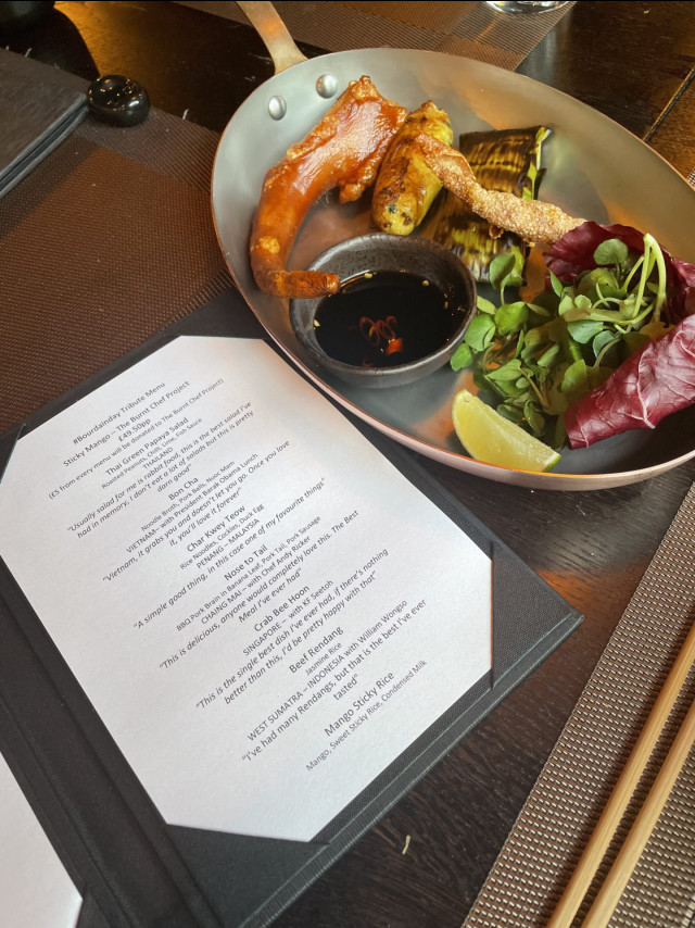 To celebrate #BourdainDay 2021, Peter and his Sticky Mango team have designed a sharing menu to re-create some of the magical discoveries and meals that Anthony brought to TV screens and a menu I was lucky enough to sample. Peter has partnered with The Burnt Chef Project to donate £5 from every menu sold to raise valuable funds for this worthwhile cause, supporting chefs and raising awareness of the ever-increasing challenges on mental health within this industry. The special menu, priced at £49.50 pp will run for one week from Monday 21st until Sunday 27th June.